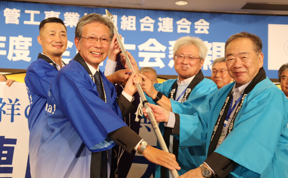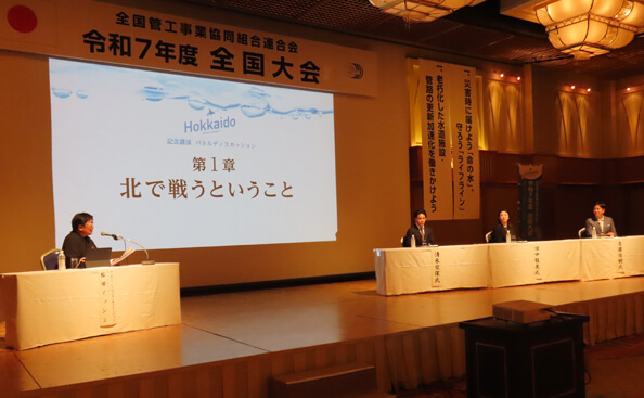 今年度から通常総会と分離開催になった全国大会では、新たな試みとして記念講演を開催し、好評をいただきました。懇親会では、全国の方々との懇親を深め、次年度の全国大会の開催地である横浜市管工事協同組合がPRを行い、盛会の内に終了いたしました。