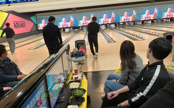 令和5年度のボウリング大会が、令和6年3月1日(金)の午後6時30分スタートで、ラウンドワン函館店を会場に行われました。5年ぶりの開催となり、組合員・協力会の社員や家族、事務局職員あわせて53人が参加して、2ゲームの競技を楽しみながら親睦・交流を図りました。