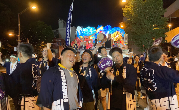令和6年8月3日(土)旭川市において第34回烈夏七夕まつりが開催され、その中で旭川市管工事業協同組合青年部による山車の連行が行われることを聞き、札管協青年部より3名参加させていただきました。