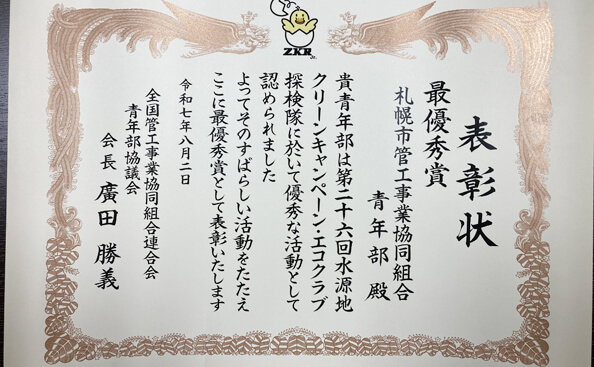札幌市管工事業協同組合青年部の活動が見事、最優秀賞に選ばれました。