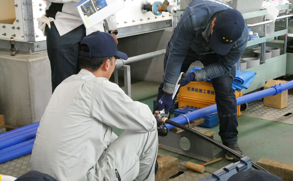 この講義は、後日開催される配管実習を円滑に進められることを目的とした事前学習として実施していることから、皆さんにしっかりと理解していただけるよう丁寧に説明を行いました。