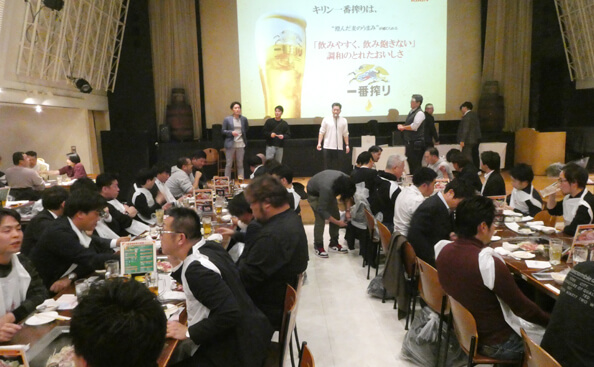 ボウリング大会終了後は、サッポロノルベサビール園に場所を移し、表彰式を兼ねた交流懇談会が行われ、他業種の青年部の方々と親睦を深めることができました。