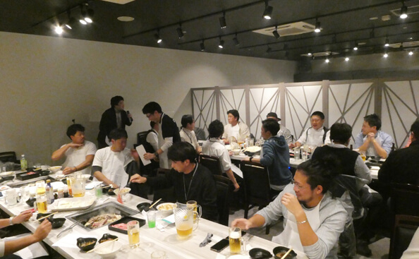 この交流会は、組合員及び賛助会員の若手社員(45歳以下)をお招きし、青年部への新規加入に繋げることを一番の目的としていますが、若手社員の方々とコミュニケーションを通じて、我々の視野を広げることも同じくらい大切な目的という考えのもと開